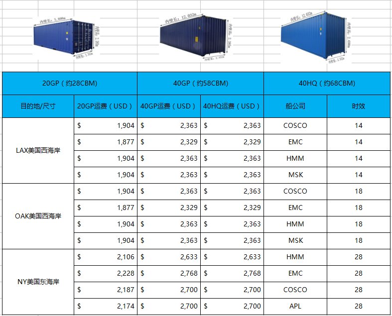 美國(guó)FBA整柜FCL到門報(bào)價(jià) (注:以下價(jià)格僅供參考,最新實(shí)時(shí)報(bào)價(jià)請(qǐng)聯(lián)系